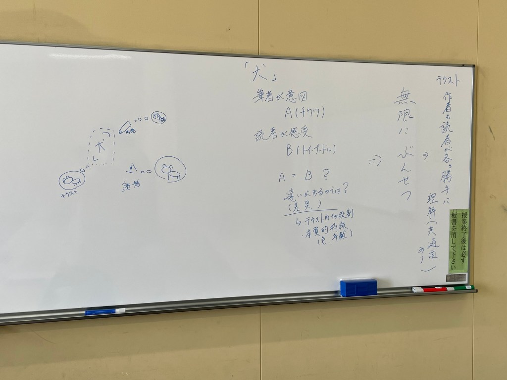 今回は、授業中のプロジェクター不調もあって100分みっちり批評理論の学習。リアぺの返答やレポートの構想発表がない分、普段より濃厚で濃密な、例えるならお菓子のトッポに入ってるチョコくらいたっぷりと、批評理論について語り合いました。
