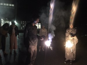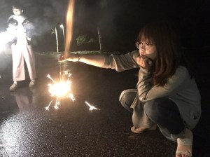 議論を終え夕食の後、小雨の降る中、息抜きに手持ち花火で夏を満喫しました!